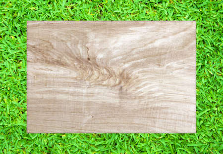 Wood plank and green grass