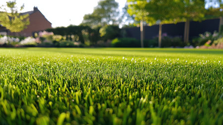Lush green grass, vibrant turf, perfect for outdoor activities or serene landscapes, creating a refreshing and inviting atmosphere for relaxation or play.