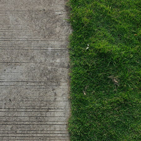 Green grass with concrete floor