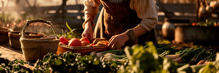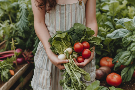 Woman harvesting vegetables. Organic farming, sustainable living, healthy food