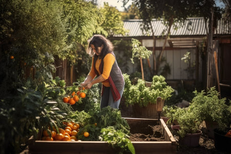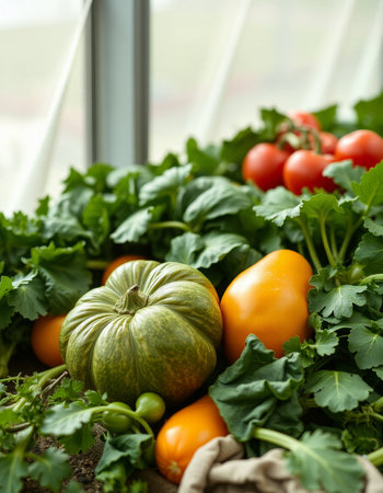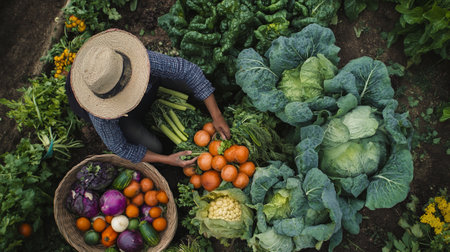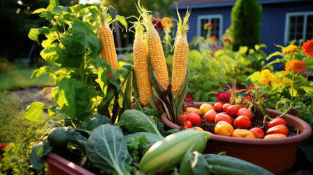 Sustainable Living: Sunlit Community Garden with Harvested Vegetables for Organic Farming