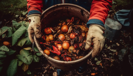 Ripe tomato held by gloved farmer hand generated by artificial intelligence