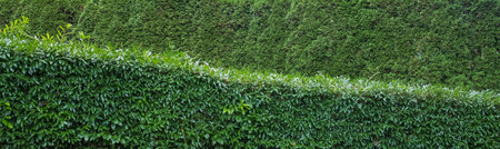 A vibrant and lush green hedge fills the frame, showcasing dense foliage and rich textures. This image captures the essence of nature's beauty and tranquility.