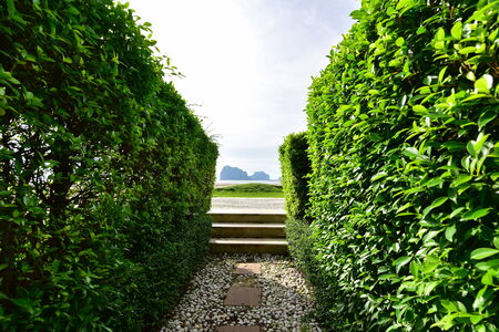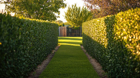 Explore a beautiful pathway lined with vibrant hedges, creating a serene and inviting atmosphere perfect for leisurely walks or moments of reflection.