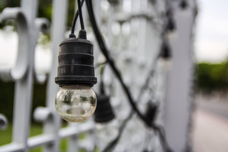 The bulbs are hung in long rows background nature of green tree look beautiful in the morning