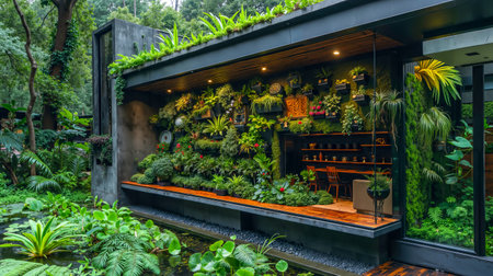 A botanical-inspired green leaf wall in an eco-conscious space, showcasing the beauty of living plants