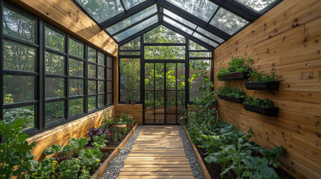 Sunlit Greenhouse Plants Vibrant Flowers Lush Greenery Tranquil Garden Peaceful Indoor Outdoor