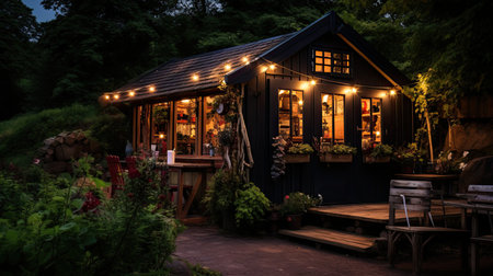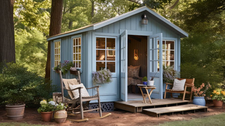posh garden shed with designer accessories and stylish decor, created with generative ai