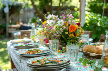 Garden table set for lunch