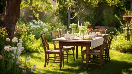a dinning table in the garden