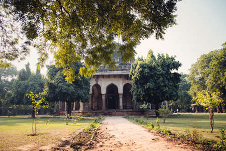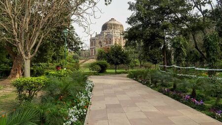New Delhi, India, Mar 30 2018 - A Landscape view of Isa Khan Garden Tomb inside Humayuns tomb which is a World Heritage architecture, situated in Delhi, India