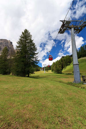 cablaway over meadow and wood in Italian Dolomites