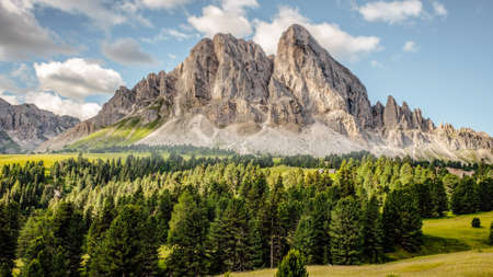 View of the Peitlerkofel (Sass de Putia), a mountain of the Dolomites in South Tyrol, Italy.