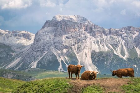 Cattle in the Italian Dolomites of the Alp Mountains. This was taken on Seceda