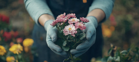 Blooming Beauty Gardener Holds Delicate Pink Flowers, A Symbol of Spring and Renewal