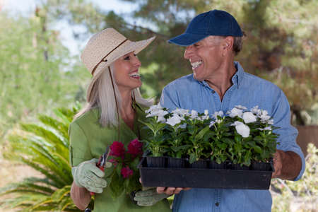 Gardening during the golden years. a senior couple gardening together in their backyard.