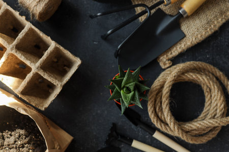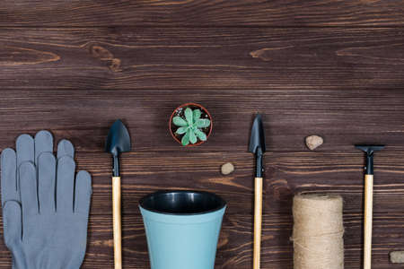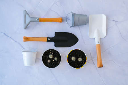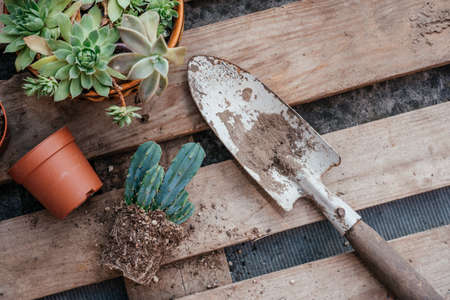 Gardening tools for repotting succulents and cactuses in the home garden