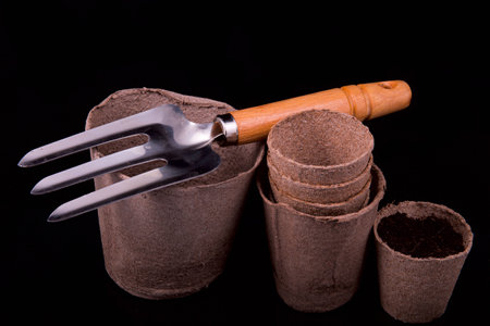 wooden background concept earth piled circle disc rake fork spade knife spoon texture planting center spring