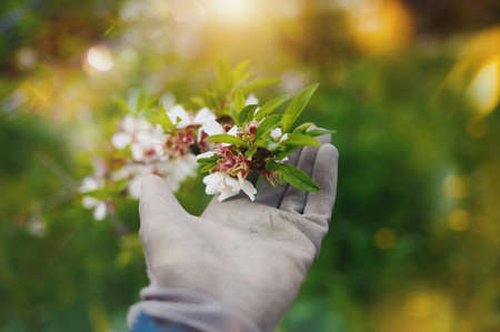 Blooming Beauty Gardener Holds Delicate Pink Flowers, A Symbol of Spring and Renewal