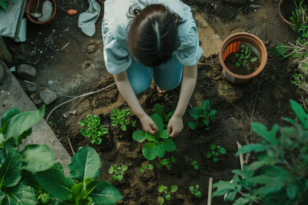 Witness the joy of gardening in spring as a pair of hands lovingly tends to blooming flowers and lush green plants.