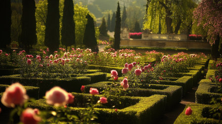 An aerial view of a labyrinth garden AI generated