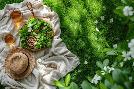 picnic with blanket spread out all food on a grassy field when spring day professional photographypicnic with blanket spread out all food on a grassy field when spring day professional photography