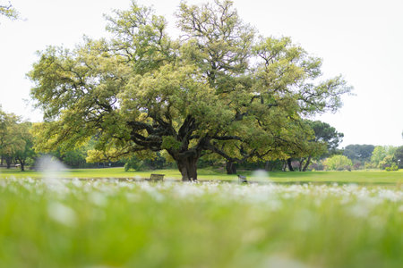 Majestic cedar in a park on the outskirts of barcelona, spain