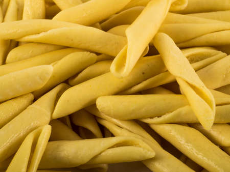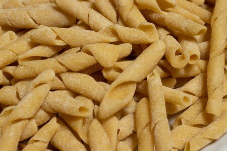 Raw Garganelli, traditional Italian pasta with a characteristic perpendicular groove.
