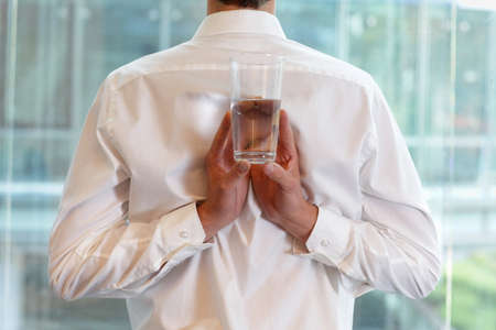 Casual businessman holding glass of water