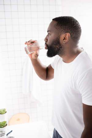 side view of afro-american man drinking water