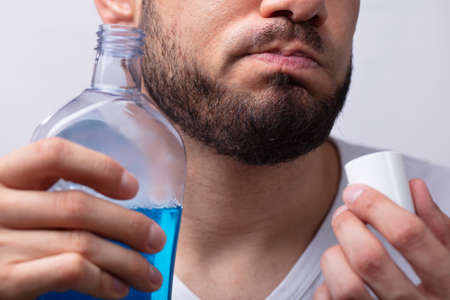 Close-up Of A Man Rinsing His Mouth With Mouthwash