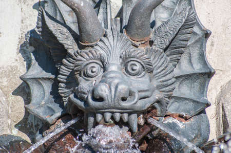 Sculpted stone mask figure on ancient fountain on the side of Church of Saint Blaise St Vlaha Dubrovnik, Croatia