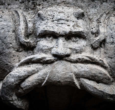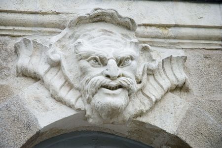 Architectural sculpture - mascaron - on the facade of a 18th century building in Nantes, France.