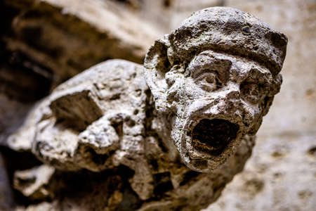 Historic Gargoyle Face with Intense Expression - Gothic Art, Stone Carving on Cathedral Wall