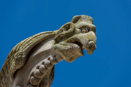 Gargoyle on the facade of the Saint-Pierre church, historical monument of gothic style, Dreux, France