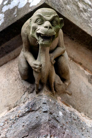 Gargoyle sculture on medieval cathedral. Mirepoix. France.