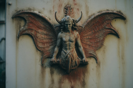 HDR.Architecture demon with wings on wall of house in Kiev, Ukraine