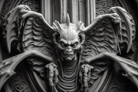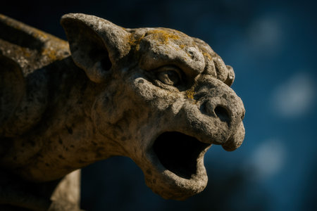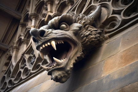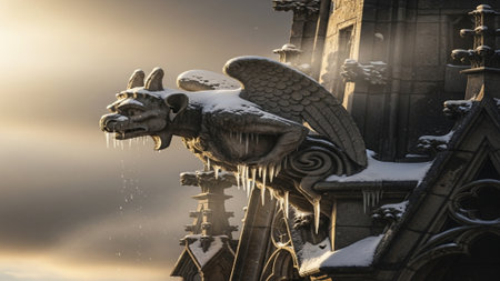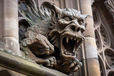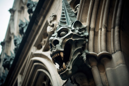 detailed shot of a stone gargoyle on a cathedral, created with generative ai