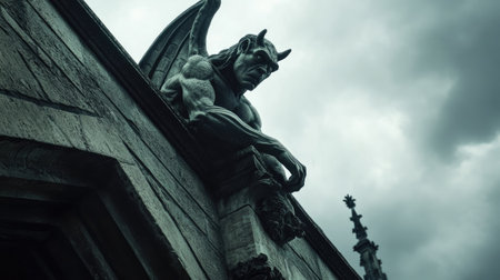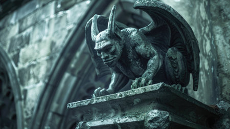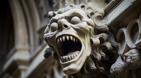 detail of a gothic stone gargoyle on a cathedral, created with generative ai