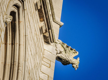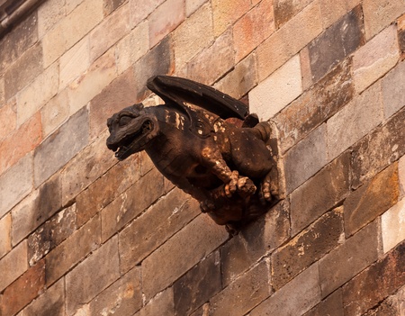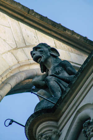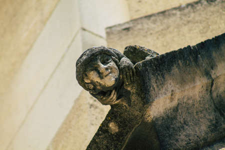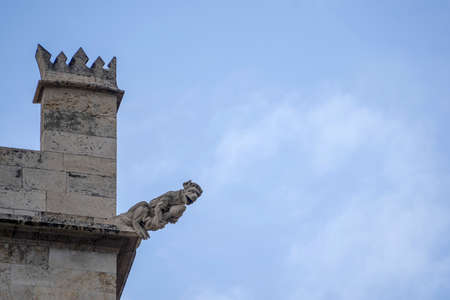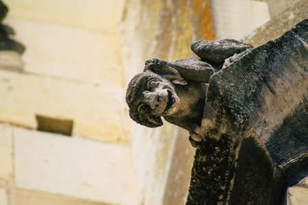 Gargoyle sculture on medieval cathedral. Mirepoix. France.