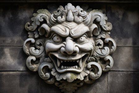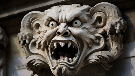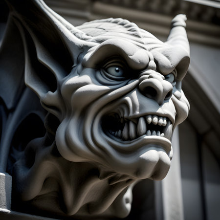 Close-up of Gargoyle Sculpture with Intense Expression - Gothic Stonework, Cathedral Decoration