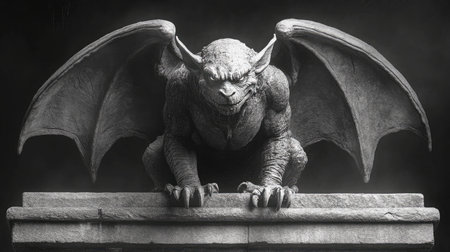 Monochrome Gothic Gargoyle, Black and White Gargoyle Sculpture, Dramatic Gargoyle Art