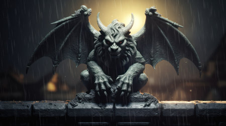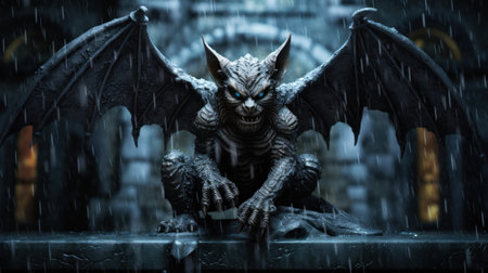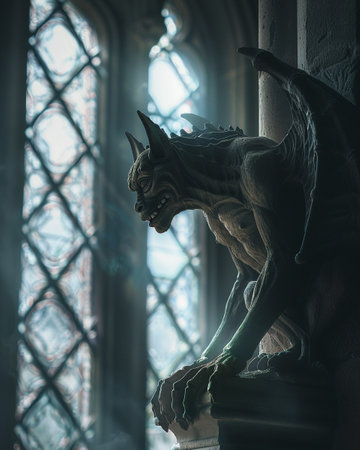 this mystical gargoyle hybrid, a fusion of ancient mythology and modern art, gazes intensely into the lens, its stone-like skin and sharp features a testament to its supernatural heritage, evoking a sense of mystery and wonder in this captivating portrait photograph, perfect for fans of fantasy and gothic architecture. ai generated