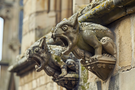 Gothic gargoyle statue, architectural stone carving, historic building ornament