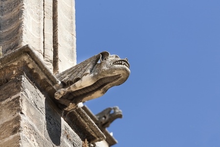 Gargoyle at the wall of the Basilique Saint-Nazaire-et-Saint-Celse in Carcassonne, France.