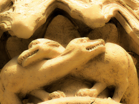 Gargoyle sculture on medieval cathedral. Mirepoix. France.