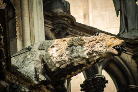 Winged creature gargoyle of gothic York Minster cathedral, England, UK. Close up