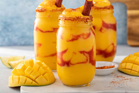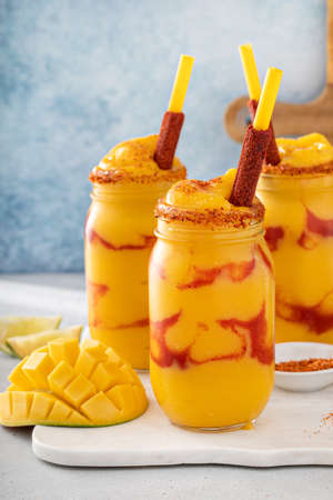 Mangonada mexican mango smoothie with chamoy sauce and lime seasoning
