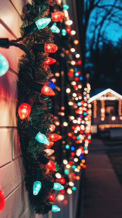 Beautiful and vibrant Christmas lights elegantly adorning a house, creating a wonderfully cozy holiday atmosphere