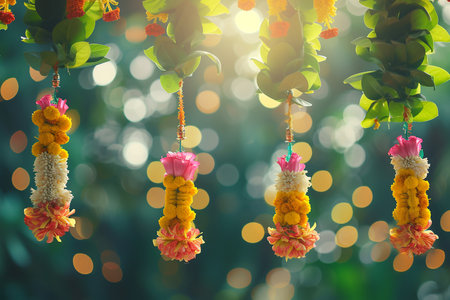 Generative AI Image of Hanging Flowers Decoration for Festival Celebration in India